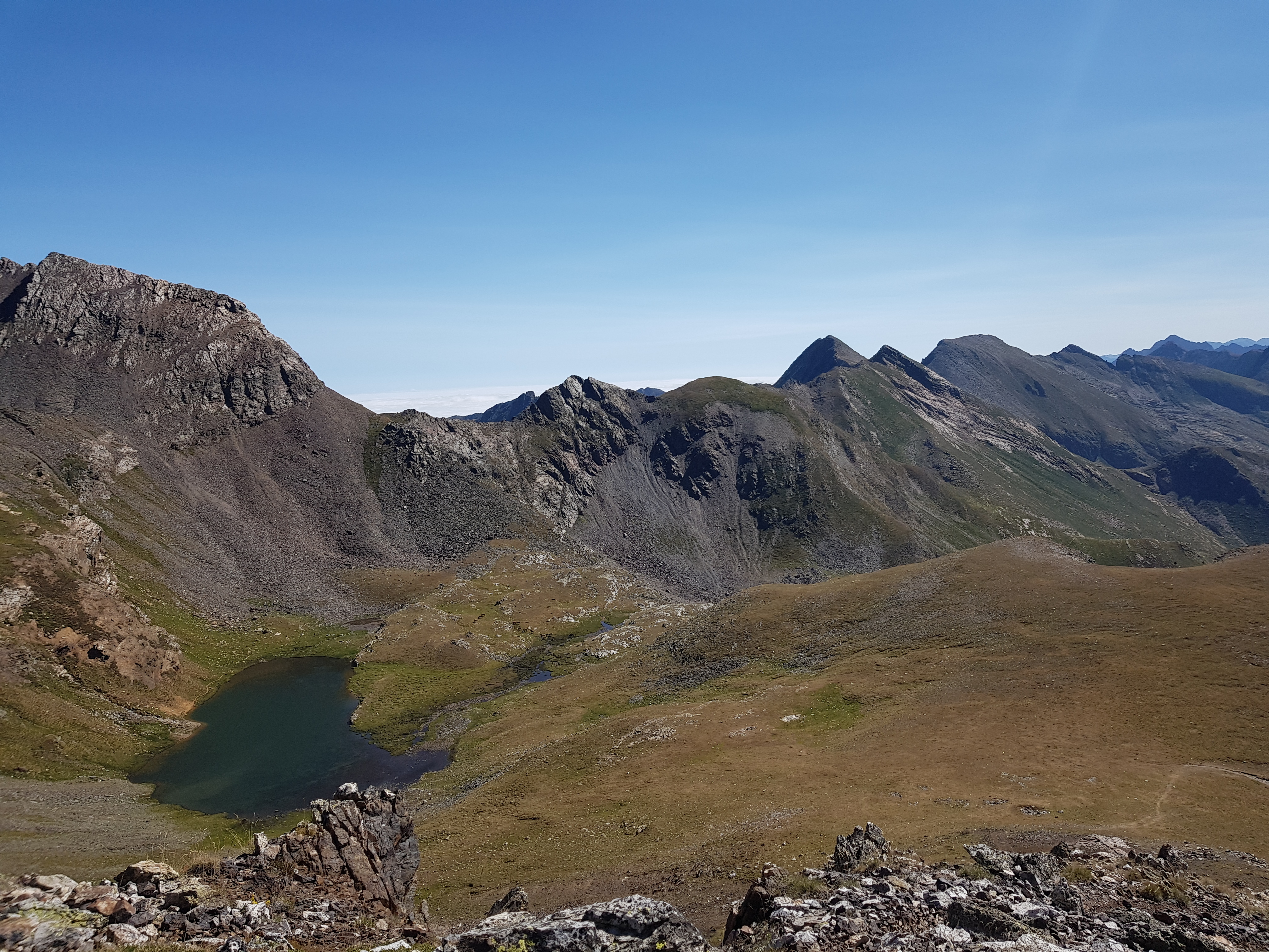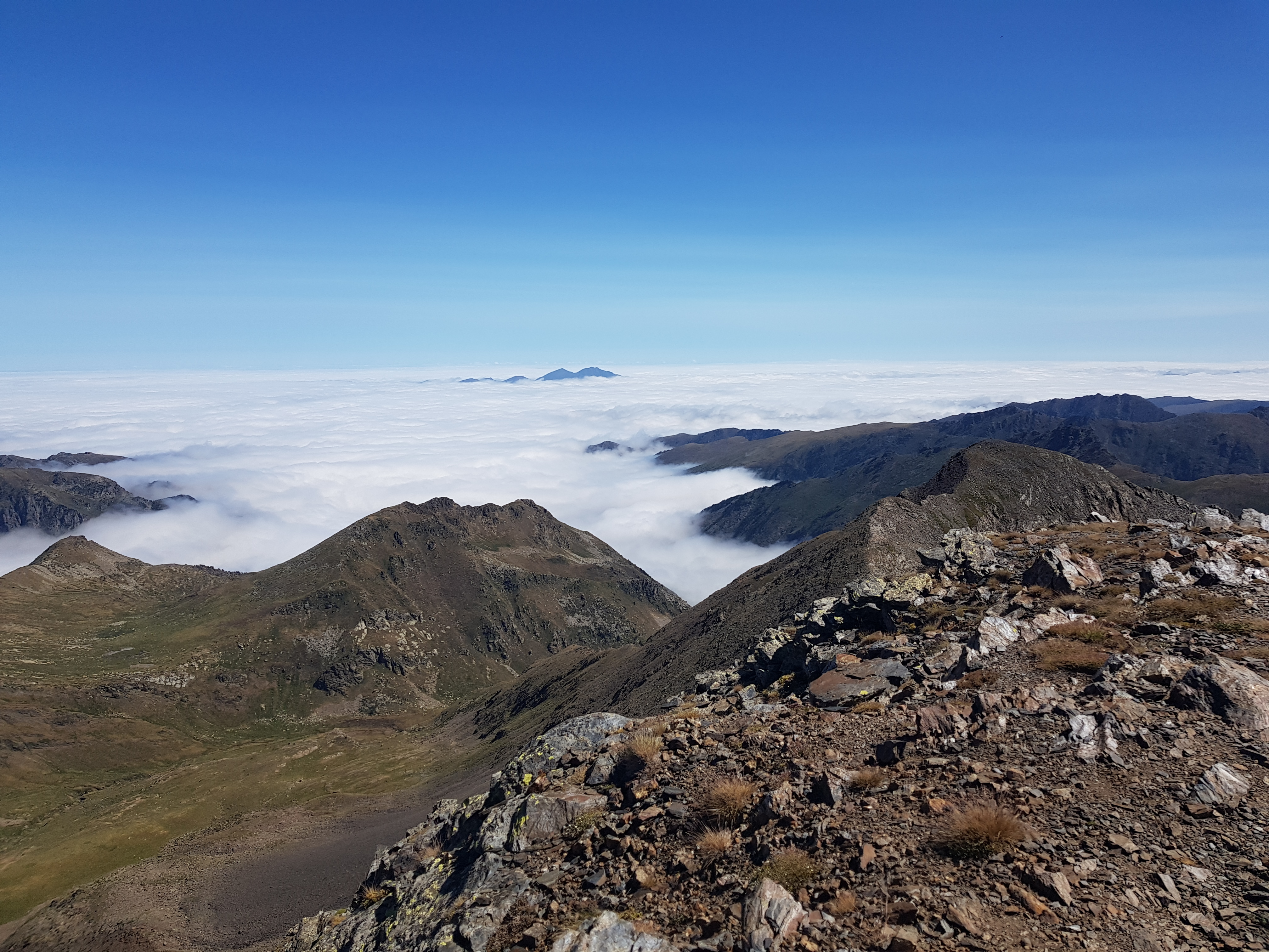 Vystoupali jsme do horského sedla Collada de Meners odkud se nám vyskytl slušný výhled na Andorské hory a také jsme přes vrcholy kopců mohli zahlédnout zemi francouzskou zahalenou mořem mraků.