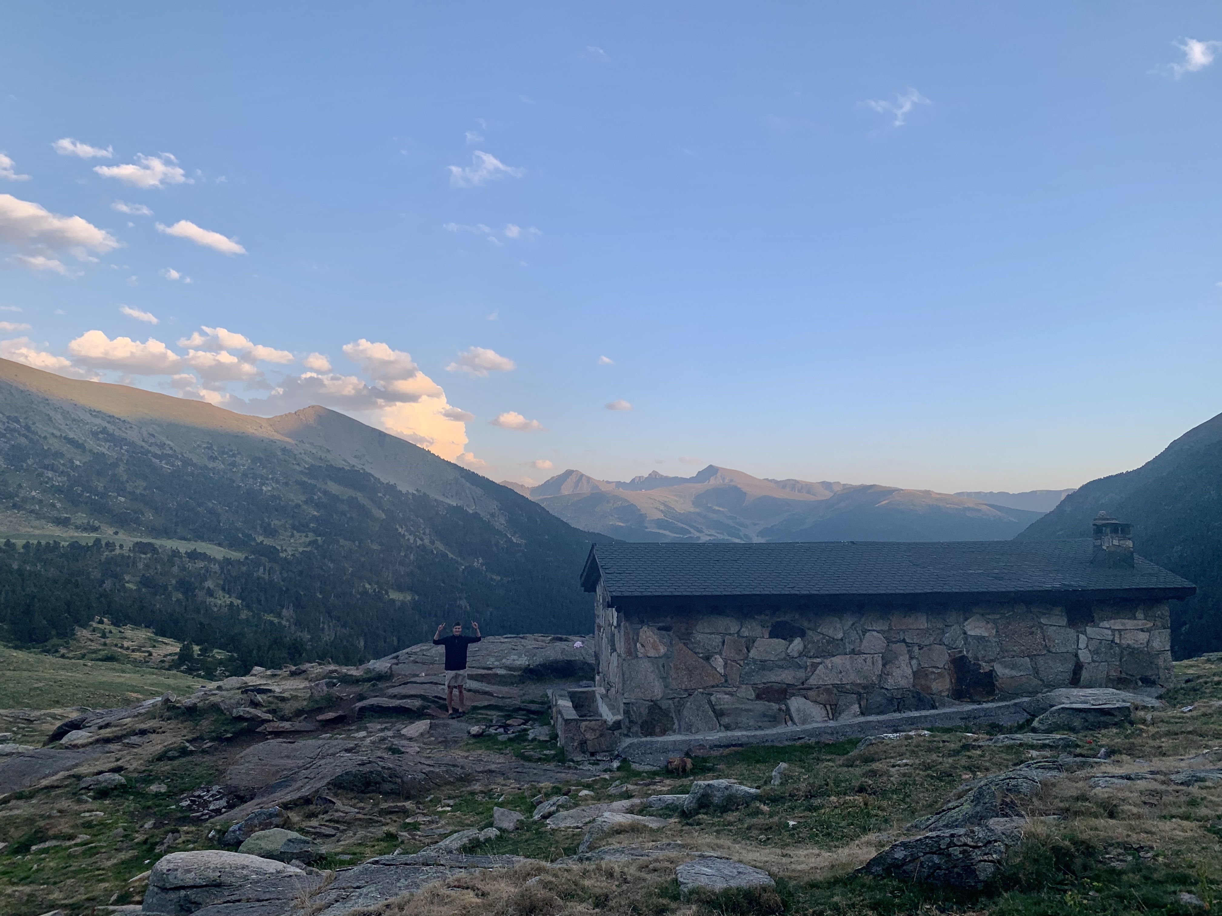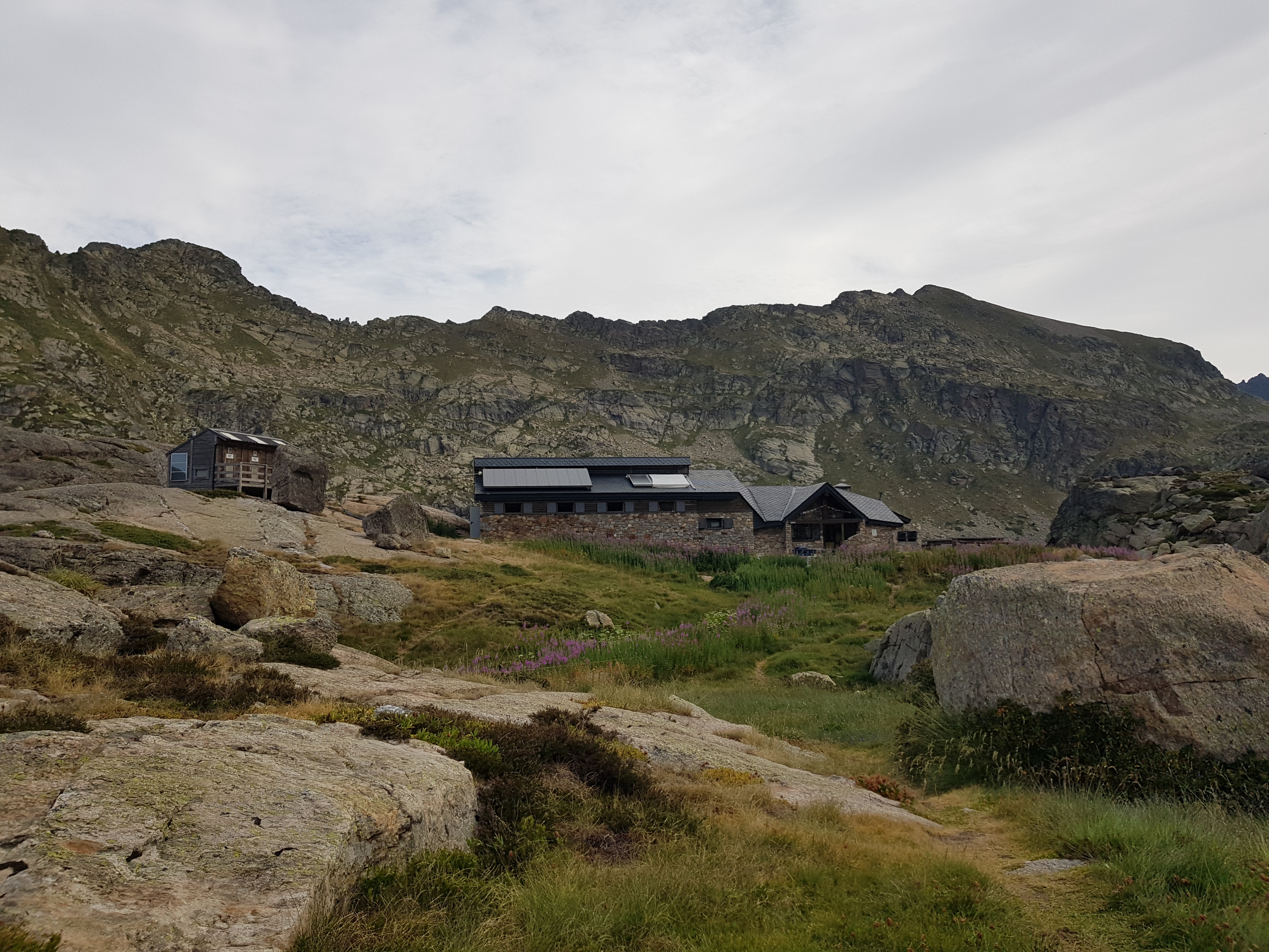 Přespávali jsme vedle horské chaty Refugi de Juclar. Po celé Andoře existuje systém horských chat. Existují dva druhy: Refugi - chata i s posádkou, kde se člověk může za 20€ vyspat hezky v peřince (+2€ daň), posilnit se teplým jídlem nebo si jen dát kávu, a druhý druh je Cabana - 4 stěny, střecha a železné palandy, kam si člověk hodí karimatku a zdarma v suchu přečká noc.