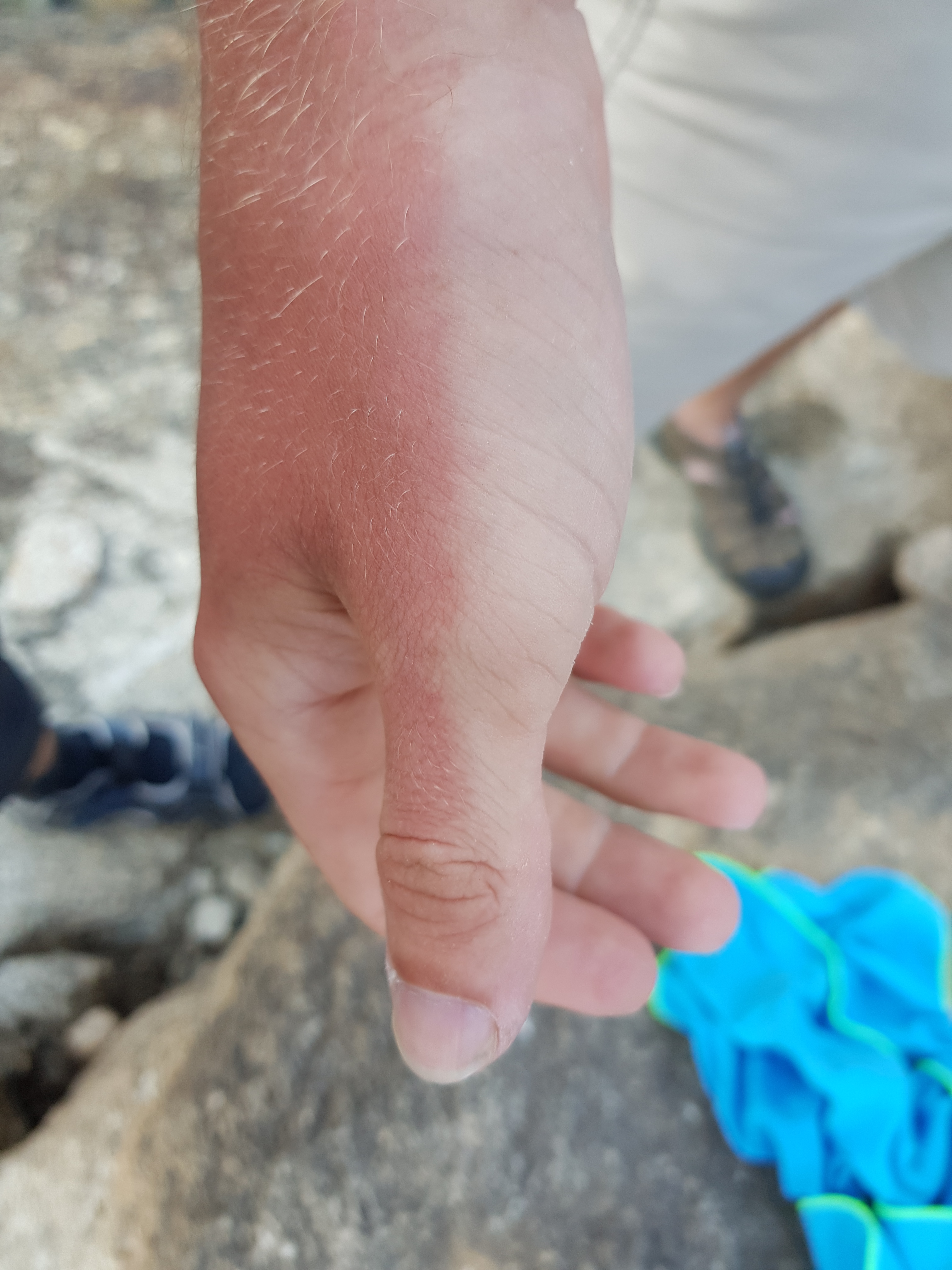 Kuba si pro změnu namazal opalovacím krémem jen dlaň a na hřbet ruky zapomněl.
