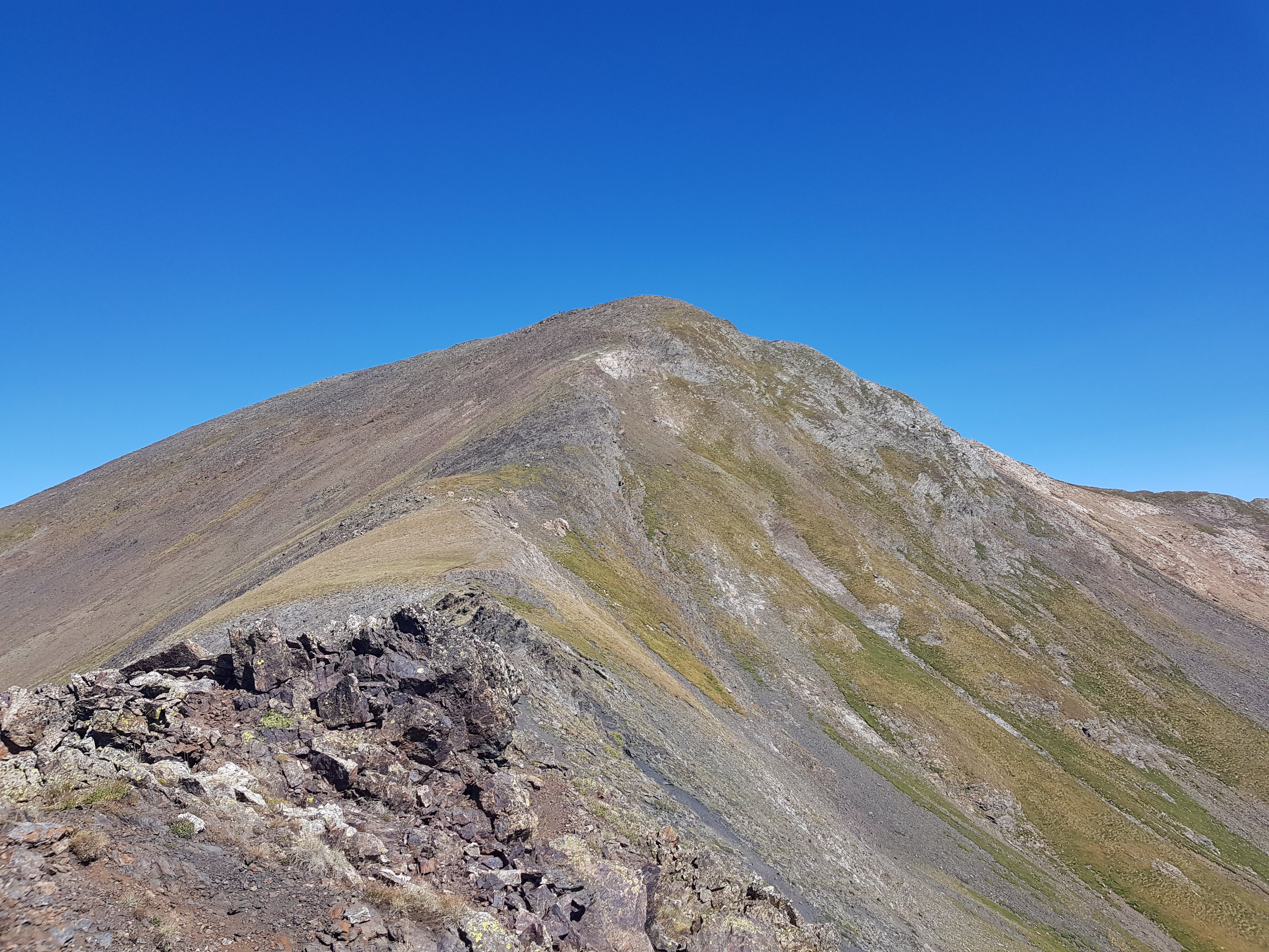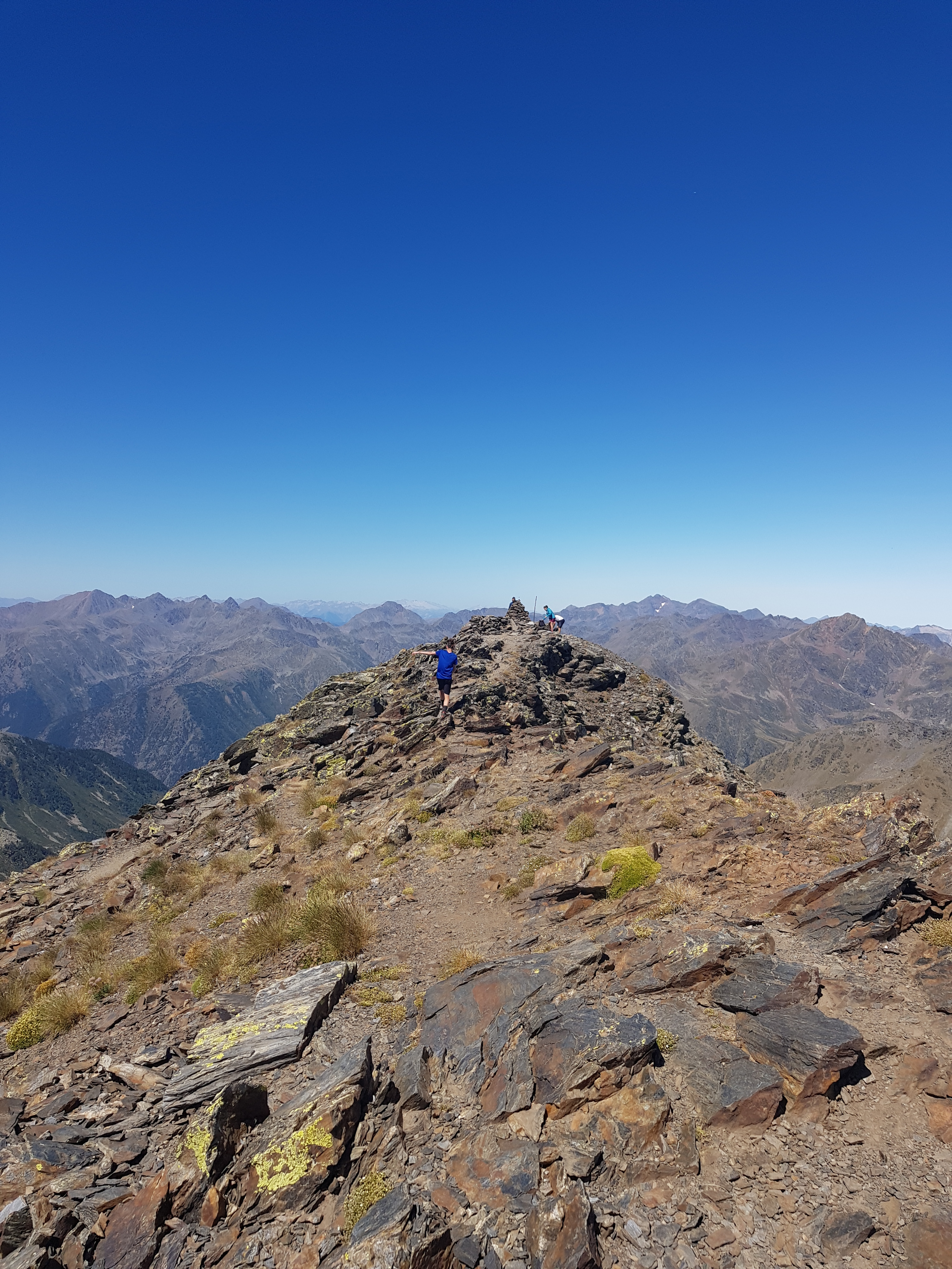 Na vrcholu zde nenajdete žádný kříž, ale železnou “tyč” vytvarovanou do tradičního andorského symbolu s názvem vrcholu a jeho nadmořskou výškou. Podobné tyče se také nacházejí u všech významnějších jezer.