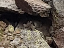 Následoval podobně prudký sestup dolů k další cabaně, kde bylo v plánu přespat. Cestou se nám konečně ukázali čtyřnozí obyvatelé místních kopců - svišti.
