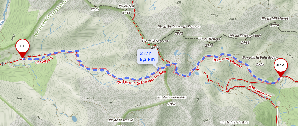 Od Colafe de Meners už naše cesta vedla jen z kopce a navíc krásnou krajinou chráněné oblasti Vall de Sorteny.
