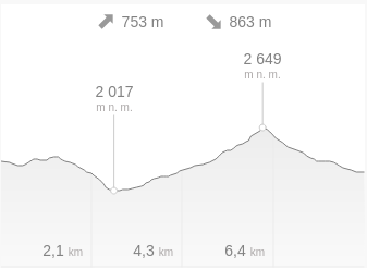 Na mapě to nevypadá tak náročně, jenomže pohled na výškový profil prozradí, že ujdeme 13 km horizontálně, ale k tomu vystoupáme 1,2 km vertikálně.