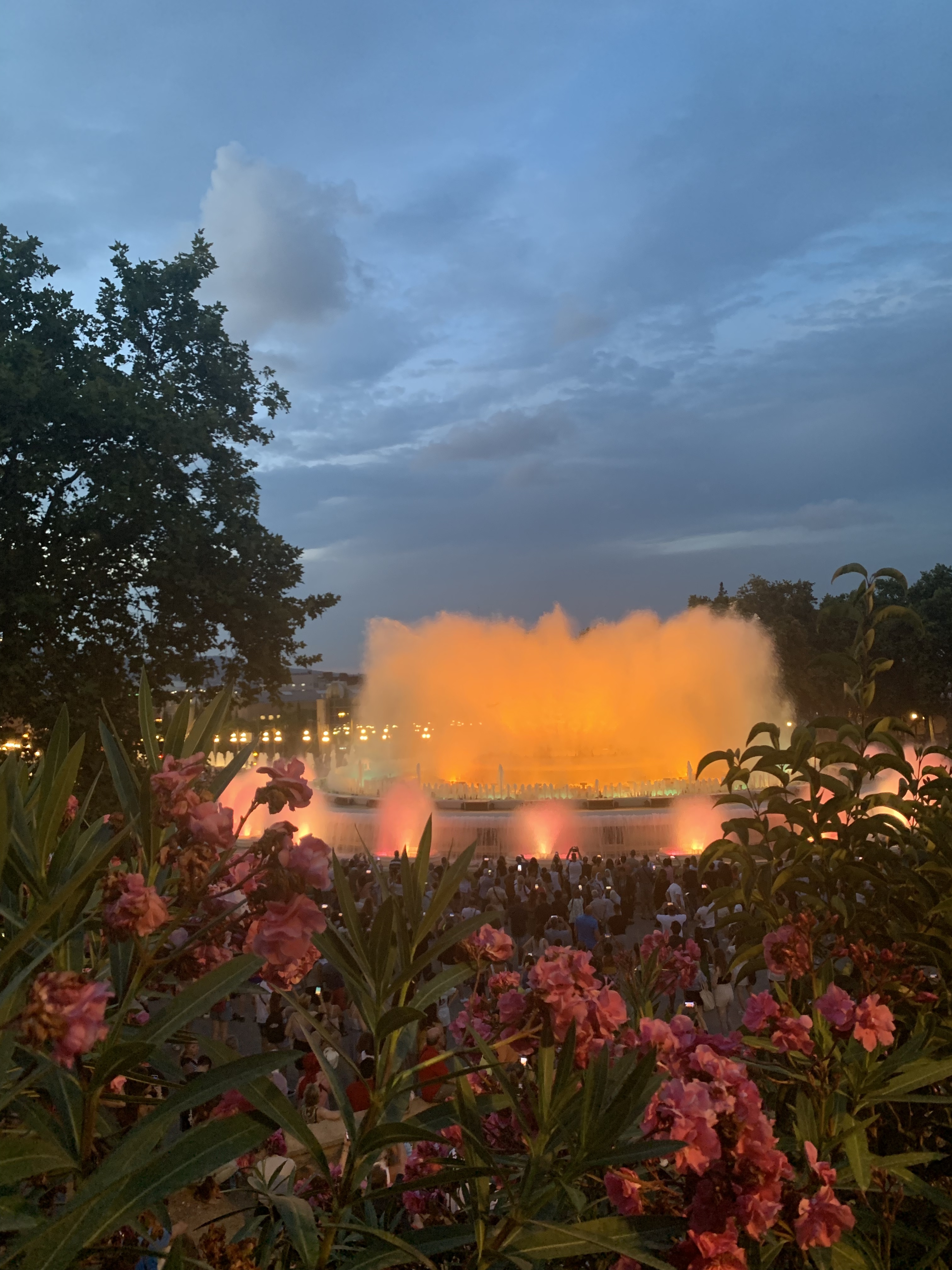 Překvapivě jsme se nevytratili po 10 minutách, jak bylo původně v plánu, ale posedávali jsme u fontány a popíjeli Desperados ze supermarketu až do konce hodinového představení. Fontána zahrála nejdříve nějakou skladbu složenou přímo pro ni, poté různé filmové znělky, nějaké popové písničky (nic moc) a nakonec několik útržků ze světoznámých symfonií (včetně Vltavy).