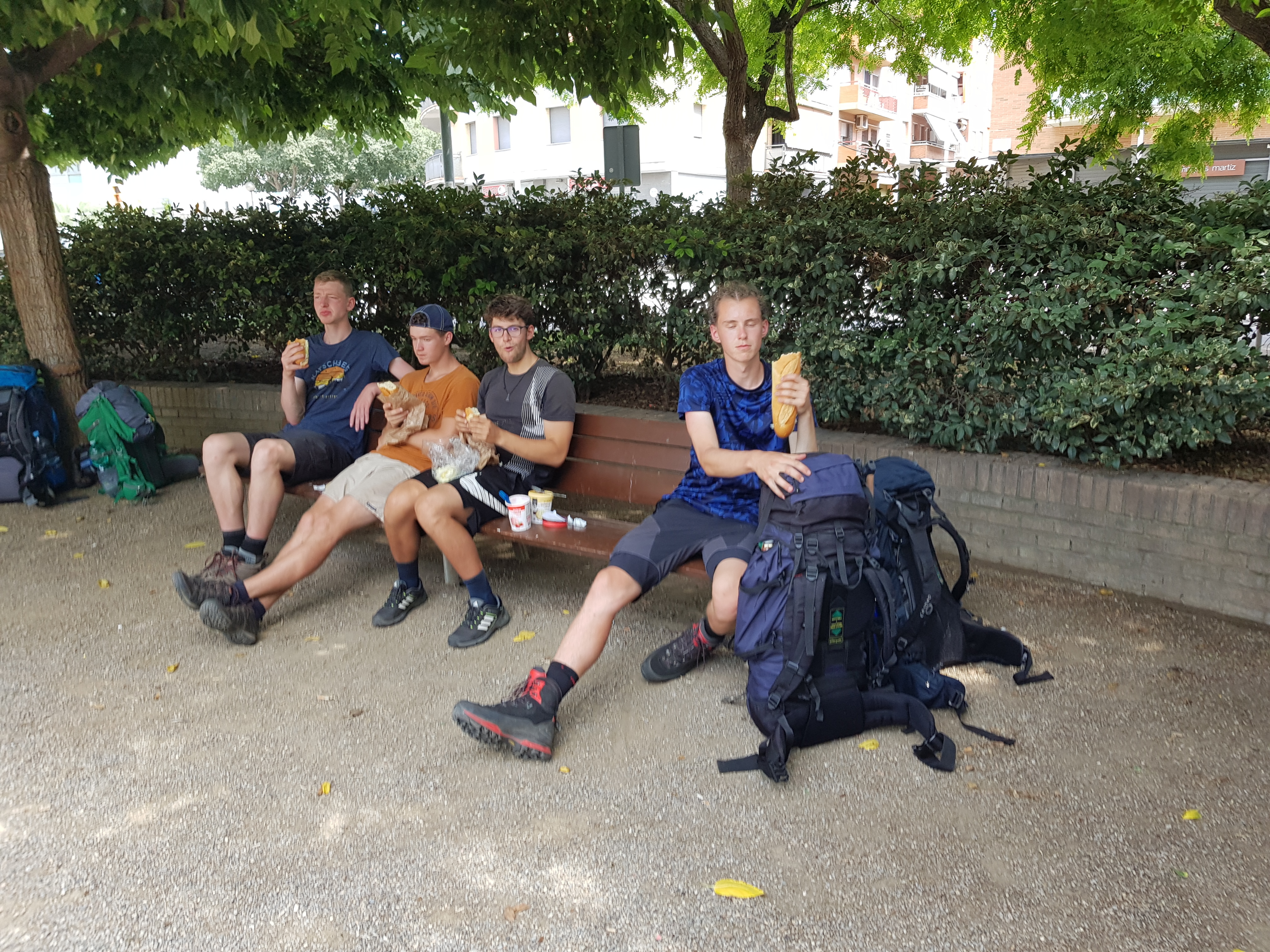 V Barceloně nás hned po vystoupení z autobusu přivítalo neskutečný vedro a dusno. Vždyť jsme přijeli v době polední siesty. Provedli jsme tedy strastiplnou cestu poledním vedrem několik kilometrů k ubytování, kde ale ještě nebylo uklizeno, tak si každý v nedalekém supermarketu koupil kyblík zmrzliny a v parku jsme ji společně s obědem snědli.