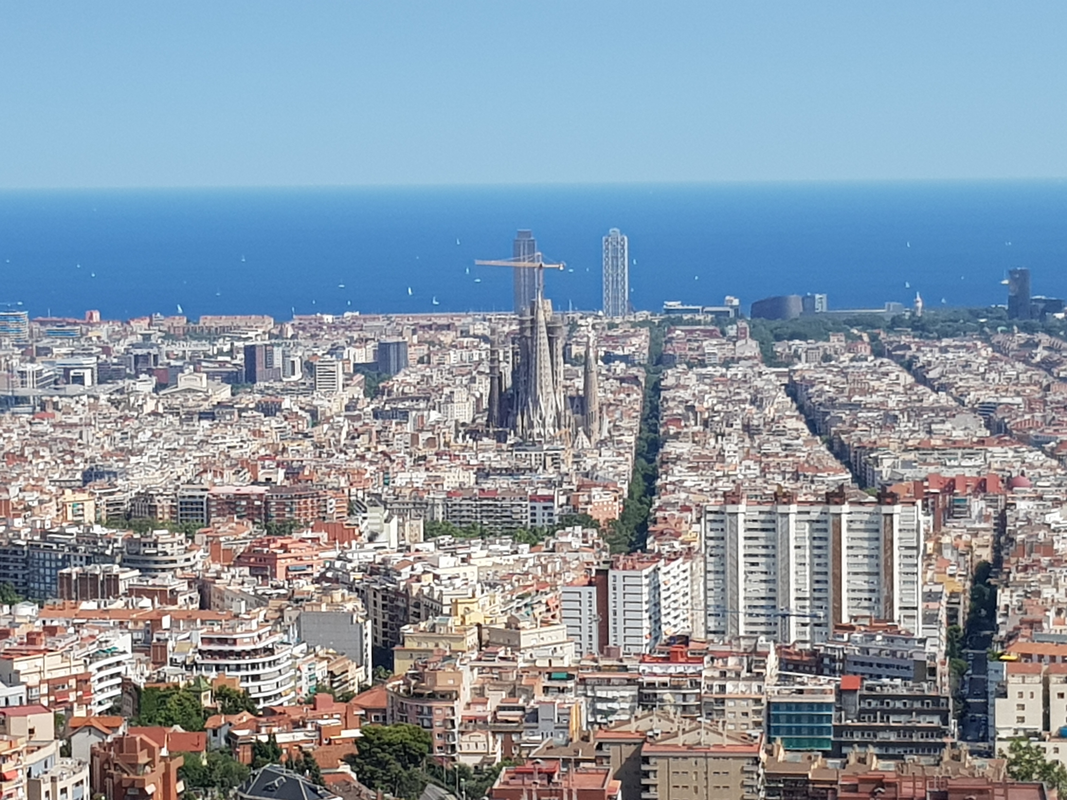 Nyní již bez přítomnosti místní pomátlé stařeny jsme si koupili oběd, se kterým jsme zamířili na nedaleký vrcholek s výhledem na celou Barcelonu.