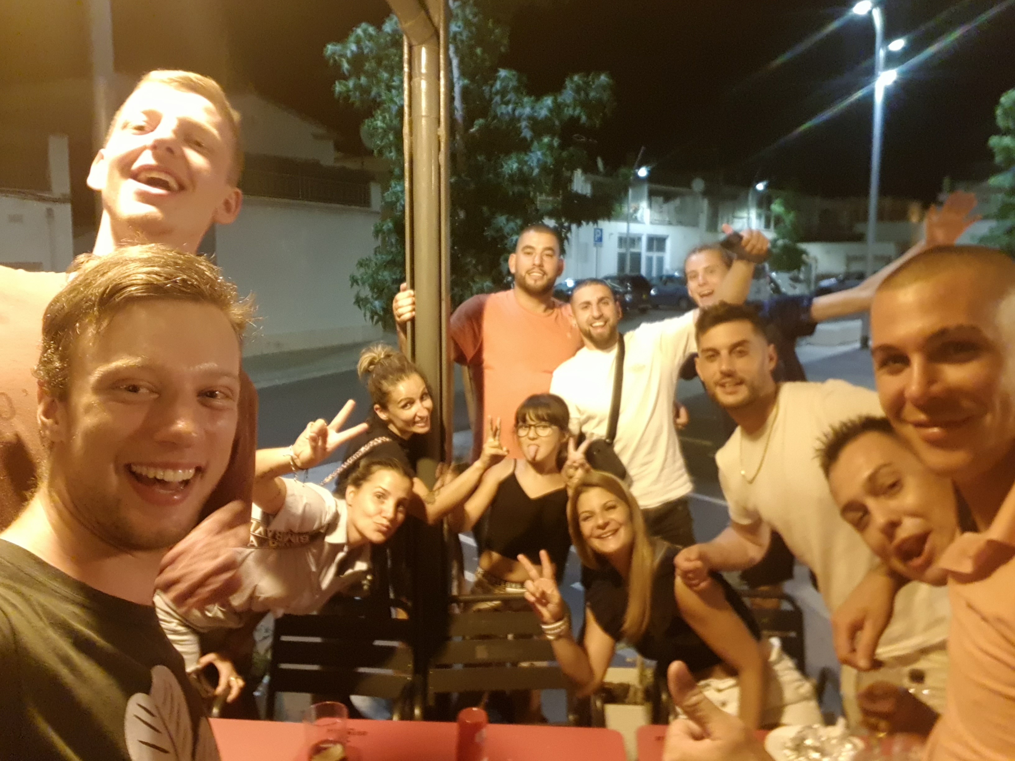 Na náměstíčku se nacházela hospoda plná místních a kolem pobíhaly malé děti. Za několik okamžiků na nás už z hospody kdosi mával, ať si přisedneme. Cestou ke stolu jsme se stavili také na výčepu pro jednu Estrellu. S pivem v ruce jsem následně zkoušel zjistit, co se zde dnes slaví, a zjistil jsem, že tam nikdo neumí anglicky. Místní po chvíli vytáhli mobil s překladačem, tak jsme “konverzovali” alespoň tímto způsobem. Nejhlučnější týpek se představil jako “největší pařmen čtvrti”, přičemž vousatý dědula, který právě věnoval veškeré úsilí tomu, aby pod vlivem alkoholu do sebe zvládl vpravit další alkohol, byl jeho otec.