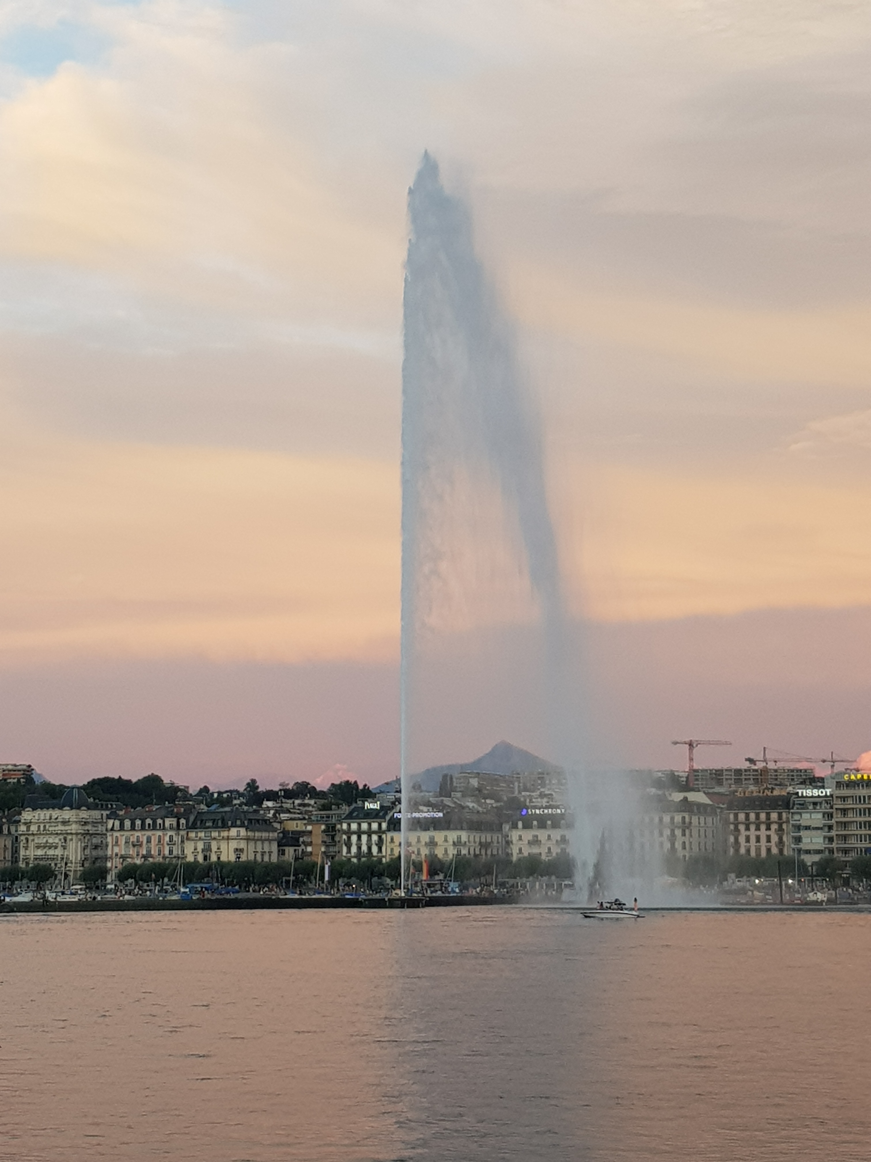 Kolem 20:00 dorazil vlak do Ženevy. Vzhledem k cenám ubytování jsme žádné neměli - v plánu bylo strávit noc prohlídkou města a vyspat se v ranním vlaku do Německa. Tak jsme se na tu prohlídku vydali.