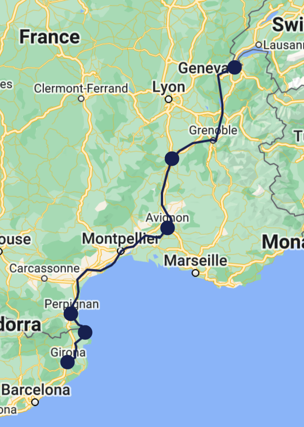První úsek byl z Girony do hraničního přechodu v Cerbère. Přibližně půl hodiny před cílovou stanicí si Matěj uvědomil drobný nedostatek - on s Filipem nemají posilovací očkování a neudělili si ani žádný COVID test, který byl tou dobou vyžadován při vstupu do Francie.